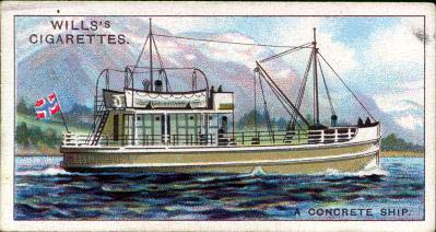 Numerous small concrete boats were built in the U.K in the 1910's. One of these ships, the Violette, was built in 1917 and is currently used as a boating clubhouse on the Medway River in England. This makes her the oldest concrete ship still afloat.