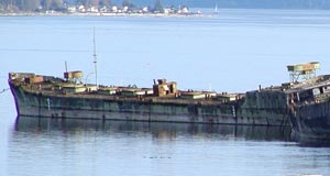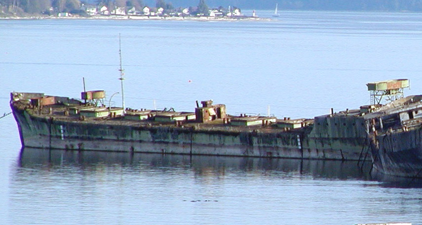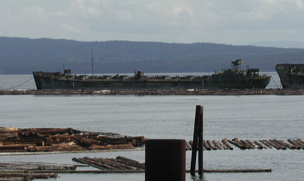 The Quartz is still afloat as part of a breakwater on the Powell River in British Columbia, Canada.