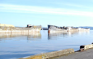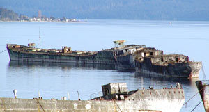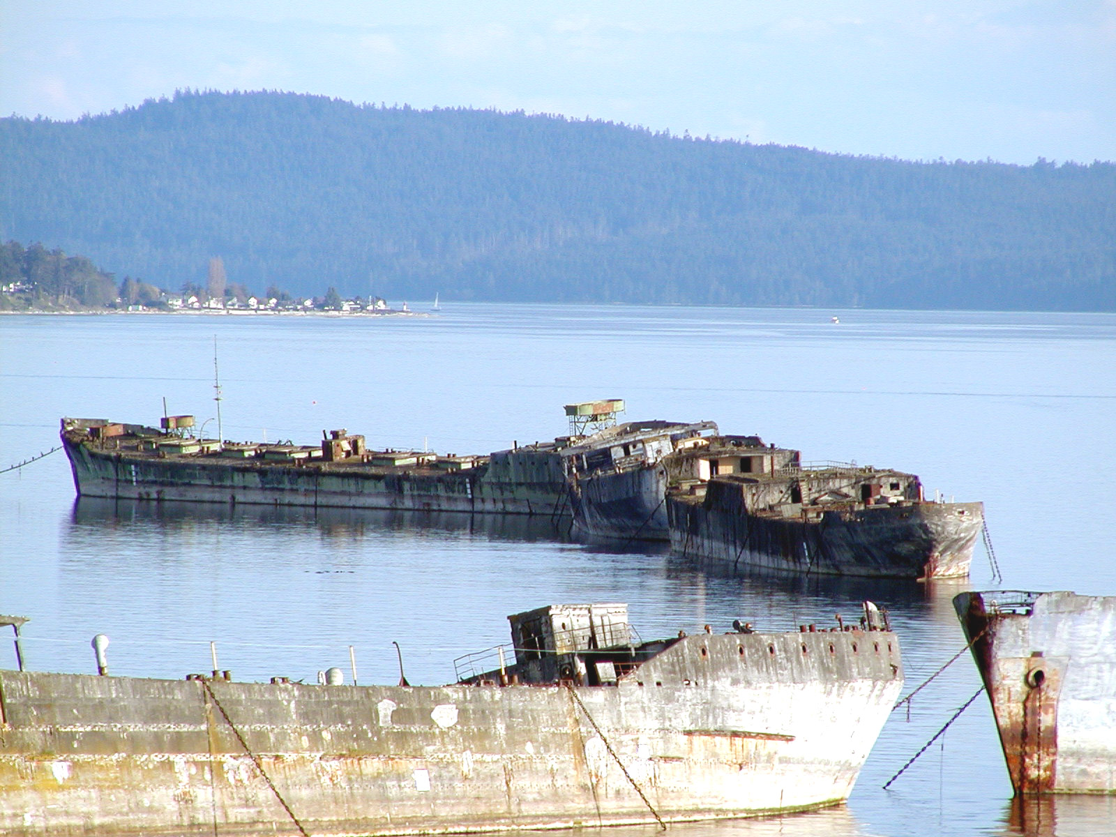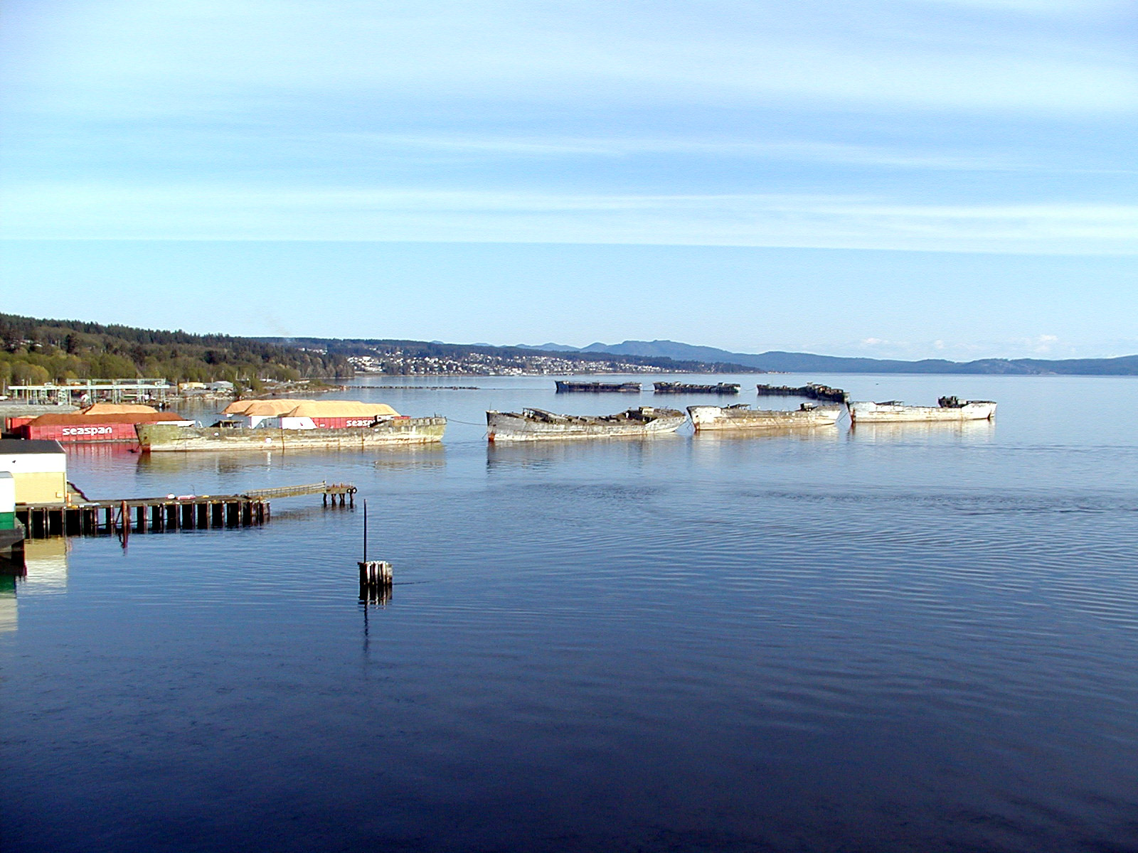 In December of 2000, the mill was downsized as the result of a corporate merger between Pacifica Papers and NorskeCanada. The mill no longer processes raw materials, so they were planning to remove a few ships from the breakwater. The company changed its mine and decided to keep all ten ships, but rearranged them.