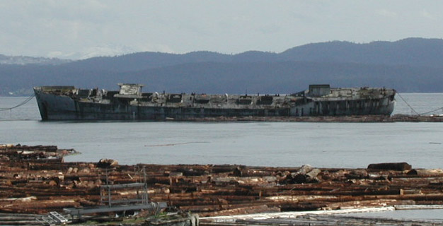 The S.S. Henri Le Chatelier was built by McCloskey and Company in Tampa, Florida and launched January 30, 1944. She was operated by A.H.Bull and Co. operated for trading sugar and, later, by the US Army as a store ship in the South Pacific. In 1948, the ship was purchased by the Powell River Company to be used in their floating breakwater.