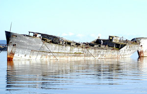 The S.S. L. J. Vicat was built by McCloskey and Company in Tampa, Florida and launched on January 30, 1944. For awhile was operated by the Lykes Brothers Company and later used as an Army store ship. In 1948, the ship was finally purchased by the Powell River Company and used as part of their breakwater.